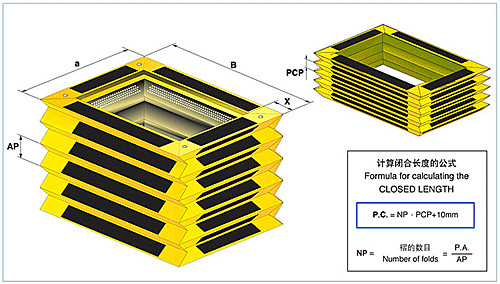 P.A.= 打開長(zhǎng)度 B = 外側(cè)寬度 P.C.= 閉合長(zhǎng)度 a=外側(cè)高度 行程 =打開長(zhǎng)度 -閉合長(zhǎng)度 x=折疊高度 計(jì)算閉合長(zhǎng)度的公式 |